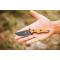 Bonne lame, coupe bien, à la volée comme en utilisation normale. Couteau léger. Le manche n'est pas désagréable le côté carré fait que les gants sont les bienvenus.
