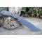 Le manche de 15,87 cm (6.25") est équipé de plaquettes en Black Canvas Micarta. Celles-ci bénéficient de la texture Rocky Mountain Tread (RMT), un fraisage spécifique qui garantit une adhérence exceptionnelle, même avec des gants ou dans des conditions humides. L'ergonomie inclut une garde intégrée et une rainure pour l'index, assurant une sécurité totale lors des utilisations intensives. Il est livré avec une Housse Nylon balistique noire compatible MOLLE, dotée d'une poche frontale pour accessoires.