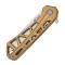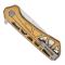 Lame semi-dentée en acier 7Cr17 avec "flipper" et cran intérieur, d'une longueur de 8,5 cm.
