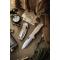 Le Manche Tan G10 (couleur sable) assure une prise en main extrêmement sûre grâce à ses plaquettes texturées. D'une longueur totale de 19,72 cm (11,13 cm fermé), le Crateris se distingue par son système de verrouillage Button Lock, permettant une fermeture sécurisée d'une seule main sans placer les doigts sur le trajet de la lame. Il dispose d'une ouverture fluide via le Thumb Pull (traction par le trou de pouce) et d'un extended tang. Avec une épaisseur de lame de 0,30 cm, il allie robustesse et finesse. Il est équipé d'un trou pour dragonne (Lanyard hole) et d'un clip de poche.