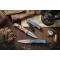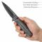 Le manche est fabriqué en Black Micarta (Micarta Noir), un matériau composite ultra-résistant offrant une adhérence exceptionnelle et un confort thermique optimal en extérieur. L'ouverture est assurée par un Flipper monté sur roulements à billes en céramique, garantissant une fluidité exemplaire. Le verrouillage Button Lock permet une manipulation rapide, sécurisée et totalement intuitive d'une seule main. Avec une longueur totale de 21,00 cm, le Dor-04BA est l'outil ultime pour la survie, la chasse ou le bushcraft.