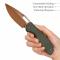 Le manche est intégralement conçu en Green Micarta (Micarta Vert), un matériau composite ultra-résistant qui offre non seulement un look organique unique, mais aussi une prise en main très sécurisante grâce à sa texture antidérapante. Avec une longueur totale de 19,60 cm, ce couteau offre une ergonomie parfaite tout en restant léger et discret en poche. L'ouverture par Front Flipper sur roulements à billes en céramique assure une fluidité totale, tandis que le Linerlock garantit un verrouillage ferme.