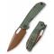 Couteau Trivisa Gecko-GM Lame Acier 14C28N Rose Gold PVD Manche Green Micarta Linerlock TVJM04GM14