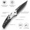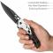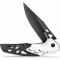 Le manche est intégralement conçu en G10 Noir et Blanc avec un Skeleton Design (ajouré), un matériau composite ultra-résistant qui offre non seulement un look futuriste unique, mais aussi une prise en main très sécurisante grâce à sa texture antidérapante. Avec une longueur totale de 21,50 cm, ce couteau offre une ergonomie parfaite tout en optimisant son poids. L'ouverture par Flipper sur roulements à billes en céramique assure une fluidité totale, tandis que le Linerlock garantit un verrouillage ferme.