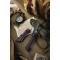 Le Trivisa Norma-03B est une fusion réussie entre tradition japonaise et ingénierie tactique. Sa lame de 8,40 cm adopte un profil Sheepsfoot, idéal pour des coupes nettes et précises sans risque de perçage accidentel. Forgée en acier suédois Sandvik 14C28N avec une dureté de 58-60 HRC, elle arbore une finition Black Stonewash robuste qui résiste admirablement à l'usure et aux reflets.