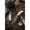 Le Trivisa Puppis (référence 02W) est un couteau pliant qui incarne le raffinement et l'artisanat traditionnel. Ce modèle de type "Gentleman Folder" se pare d'une lame de 8,89 cm (3.5") en lame acier damas composé de 67 couches. Ce travail de forge offre non seulement des motifs ondulés uniques sur chaque pièce, mais assure également un tranchant rasoir et une excellente durabilité. Son profil de lame Drop Point est idéal pour une utilisation quotidienne élégante.
