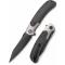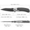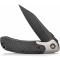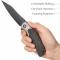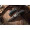 Le manche est une alliance de noblesse et de robustesse, combinant des plaquettes en Black Micarta (Micarta Noir) et des mitres en Titane (Titanium Bolsters). L'ouverture est d'une fluidité exemplaire grâce au système Flipper et au Thumb Disk (disque de pouce) en titane, tous deux montés sur des roulements à billes en céramique. Le verrouillage Liner Lock assure un blocage ferme et sécurisé de la lame.