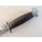 RH PAL 36 parkérisé. Le couteau RH 36 était fabriqué jusqu’en 1940 par le département coutellerie de Remington Arms Co. Après 1940 et durant toute la guerre il sera fabriqué par Pal Blade Co. Le PAL 36 fait parti des couteaux achetés en urgence sur catalogue, puis par contrat par l’armée US durant la WW2. Il sera utilisé par toutes les branches de l’armée américaine. Dans la nomenclature officielle, il était désigné comme « hunting knife ». Il n’y a eu que 2 contrats militaires pour la version parkérisée en 1944. Cet exemplaire est en état d’usage et les photos participent à sa description. Lame en dimensions d’origine, pas de choc, pas de dent, aucune oxydation, mais elle a été affutée. Il reste environ 40% de sa parkérisation d’origine, marquage bien visible. Belle poignée avec entretoises noires et marrons sous le pommeau et au dessus de la garde, pas de manque de cuir, pas de rondelle fissurée, pas de jeu dans les rondelles, pas de jeu à la garde, un jeu horizontal très très léger au pommeau si on force, il ne bouge pas seul. Le fourreau cuir est son modèle d’origine, la version dite « militaire » à 9 rivets. Il est en bon état d’usage, la sangle de poignée est d’origine et fonctionnelle.