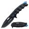 Couteau EDC USMC A/O Blue 3Cr13 Tanto Blade Stainless Handle Framelock Clip - Système à ouverture assistée - Longueur ouvert 21.59cm - Longueur fermé 12.70cm - Longueur de lame 8.89cm - Lame de type tanto plain edge finition black - Lame en acier 3Cr13 - Platines en acier - Plaquettes du manche en métal - Manche ergonomique - Brise vitres blue avec trou pour dragonne - Ouverture d'une main avec le thumb & le flipper - Système de sécurité framelock - Clip de poche