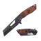 Ce couteau pliant USMC (United States Marine Corps) combine un design classique et une fonctionnalité moderne. Il est doté d'une lame de type Wharncliffe de 8,59 cm en acier inoxydable, traitée avec une finition Black Stonewash pour un look robuste et une meilleure dissimulation des rayures. Le système d'Ouverture Assistée (Assisted Opening) est activé par l'Extended Tang (utilisé ici comme un Flipper) et un Thumb Pull (tirette de pouce), garantissant un déploiement rapide et fiable. Le manche est orné de belles plaquettes en bois brun accentuées par des mitres en acier inoxydable.