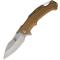 Le manche est en aluminium tan, offrant une prise en main confortable et sécurisée. Le couteau est équipé d'un clip pour un port discret et pratique, ainsi que d'un trou pour lanière et d'une ouverture flipper pour une utilisation facile.