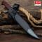 Couteau Tactical EDC United Cutlery Honshu Pioneer Bowie 1075 Carbon Steel Blade Wood Handle Leather Sheath à lame fixe - Longueur totale 45.08cm - Longueur de lame 31.43cm - Epaisseur de lame 5.5mm - Lame de type bowie plain edge finition black - Construction d'une seule pièce - Full tang - Lame en acier carbone 1075 - Garde en acier - Plaquettes du manche en bois - Trou dans le manche pour dragonne - Etui cuir - Poids 885grs