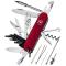 Le couteau muti-fonctions Cybertool 34 de la marque Victorinox est composé d'un manche translucide rouge de 91 mm et de 19 éléments en acier inoxydable cités ci-dessus. Équipé d'un anneau, il sera facile de l'avoir toujours à portée de main en l'accrochant à un trousseau par exemple !