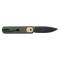 Couteau EDC Vosteed Corgi Green 14C28N Blackwash Blade Micarta Handle IKBS Trek Lock Clip pliant - Longueur ouvert 18.21cm - Longueur fermé 10.61cm - Longueur de lame 7.59cm - Epaisseur de lame 3mm - Lame de type drop point plain edge finition blackwash - Affutage flat - Lame en acier 14C28N - Dureté 60±2 HRC - Lame montée sur pivot avec roulements à billes en céramique (Caged Ceramic Ball Bearing) - Platines en acier - Plaquettes du manche en green micarta - Ouverture d'une main avec le front flipper - Système de sécurité Trek Lock - Clip de poche