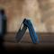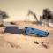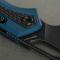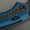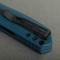 Le manche est une pièce d'ingénierie remarquable : il combine une structure en Aluminium Bleu anodisé avec des inserts en Fibre de Carbone noirs, offrant un contraste visuel saisissant et une légèreté optimale. Ce modèle utilise le mécanisme de verrouillage Top Liner Lock, un système sécurisé situé sur le dessus du manche, permettant une fermeture intuitive sans jamais placer les doigts sur le passage de la lame.