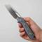 Le manche est usiné en Manche Aluminium gris, offrant une structure légère et rigide, sublimée par des inserts en Ocean Micarta. Ce matériau apporte une texture organique et une prise en main chaleureuse qui contraste parfaitement avec le métal. D'une longueur totale de 20,32 cm, le Kroc intègre le système de verrouillage Top Liner Lock, situé sur le dos du manche pour une sécurité optimale. L'ouverture sur roulements à billes en céramique est un modèle de fluidité, que vous utilisiez le Flipper ou le Thumb Hole.
