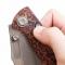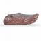Le manche ergonomique est orné de plaquettes Raindrop Micarta (couleur Cuivre). Ce matériau de qualité fusionne l'intégrité du G10 avec le confort texturé du Micarta traditionnel, offrant une prise en main stable et confortable.