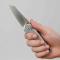 Sa lame Reverse Tanto de 73,85 mm (soit 2,90 pouces) est fabriquée en acier inoxydable premium S35VN, offrant une performance de coupe exceptionnelle, une excellente rétention du tranchant et une grande durabilité. La lame bénéficie d'une émouture Plate (Flat Grind) et d'une finition Satin & Brushed (Satiné et Brossé). L'ouverture est assurée par un Thumb Stud (goupille de pouce) sur un roulement à billes en céramique encagée pour une action rapide et fluide.