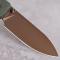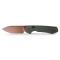 Le manche de 11,07 cm est en Micarta vert, un matériau composite durable qui offre une prise en main naturelle et confortable. Ses bords bien chanfreinés améliorent l'ergonomie, s'adaptant à divers styles de prise. Le couteau s'ouvre facilement grâce à un bouton de pouce, et son action fluide est assurée par un pivot sur roulement à billes en céramique encagé. Le mécanisme de verrouillage Top Liner Lock garantit une sécurité robuste et un fonctionnement aisé. Les boutons et le repose-pouce sont également dotés de la même finition Copper Dune, ajoutant à l'esthétique cohérente du couteau.