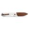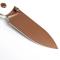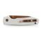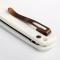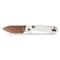 Ce couteau est doté d'une lame de 8,26 cm de style Drop Point avec un profil élégamment incurvé rappelant un Bowie, fabriquée en acier 14C28N. Cet acier de haute qualité, avec une dureté de HRC 59±1, assure un tranchant exceptionnel, une grande durabilité et d'excellentes capacités de coupe et de perforation. La lame présente une finition Cuivre Dune distinctive, ajoutant une touche esthétique unique. Le manche de 11,06 cm est fabriqué en G10 blanc, bien chanfreiné pour offrir un confort maximal et une prise en main naturelle pour diverses tailles de mains et styles de préhension.