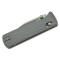 Ce couteau est doté d'une lame de 7,41 cm de style Bowie en acier M390, avec une finition satinée et un affûtage plat. L'acier M390 est réputé pour sa rétention de tranchant exceptionnelle, sa résistance à l'usure et sa haute résistance à la corrosion. Le manche est fabriqué en aluminium gris texturé CNC, offrant une prise en main ergonomique et sécurisée. L'ouverture est facilitée par un ergot de pouce en aluminium vert, et des roulements à billes en céramique encagés assurent un mouvement fluide et précis. Le mécanisme de sécurité est un Crossbar Lock, fiable et facile à manipuler d'une seule main. Un clip de poche en fil d'acier inoxydable, réversible et doté d'une platine en aluminium gris, permet un transport discret en position "tip-up". Le couteau intègre également des zones de jimping doubles pour une meilleure adhérence du pouce et une butée de roulement à billes unique ("Ball Roll Bar") pour améliorer la douceur du verrouillage et la fiabilité.