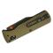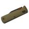 Ce couteau est doté d'une lame de 7,41 cm de style Bowie en acier M390, avec une finition Black Stonewash et un affûtage plat. L'acier M390 est réputé pour sa rétention de tranchant exceptionnelle, sa résistance à l'usure et sa haute résistance à la corrosion. Le manche est fabriqué en aluminium vert olive texturé CNC, offrant une prise en main ergonomique et sécurisée. L'ouverture est facilitée par un ergot de pouce en aluminium orange, et des roulements à billes en céramique encagés assurent un mouvement fluide et précis. Le mécanisme de sécurité est un Crossbar Lock, fiable et facile à manipuler d'une seule main. Un clip de poche en fil d'acier inoxydable, réversible et doté d'une platine en aluminium noir, permet un transport discret en position "tip-up". Le couteau intègre également des zones de jimping doubles pour une meilleure adhérence du pouce et une butée de roulement à billes unique ("Ball Roll Bar") pour améliorer la douceur du verrouillage et la fiabilité.