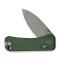 Manche ergonomique en micarta vert pour une prise en main large et confortable.