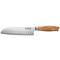 Le manche en bois d'olivier naturel, gravé d'un sigle japonais, assure une prise en main confortable, transformant vos sessions culinaires en moments agréables et efficaces. Conçu pour exceller dans la découpe de légumes, viandes et poissons, le Santoku Wusaki allie performance et esthétique grâce à son magnifique motif damassé et son martelage anti-adhérence.