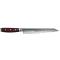 La lame du couteau Yaxell Super Gou Découper est composée de 161 couches d'acier damassé, avec un noyau central en acier japonais SG2. La dureté de la lame atteint 63 HRC grâce au traitement thermique avancé, assurant une finesse de découpe incomparable. Le manche est en micarta rouge et noir, renforcé par trois rivets inoxydables et un pommeau en acier gravé, offrant un design ergonomique pour un confort exceptionnel.