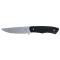 Un étui de type Kydex accompagne ce couteau, garantissant un port sécurisé et une protection optimale de la lame. La longueur totale de 220 mm, avec une lame de 100 mm, assure un équilibre parfait entre maniabilité et efficacité. Le manche en G10, finition noire, procure une prise en main confortable et antidérapante, même dans des conditions humides.
