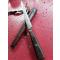 Ancien bou saada de la guerre d'algérie. Couteau traditionnel. Lame faite à base d'une ancienne lime de 20,5 cm légèrement ciselée. Manche en bois décoré de rivets en laiton .longueur total hors fourreau 35 cm .fourreau en bois recouvert de cuir