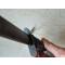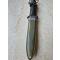 Le corps du fourreau est fabriqué en toile thermo plastifiée de couleur vert-olive. Il est d’une longueur de 187 millimètres en comptant la longueur de la chape en acier. Un drain d’évacuation de l’eau et des impuretés est aménagé au bas de celui-ci, ce trou traverse ce dernier de part en part et sert également au passage d’un lacet de retenu. A noter que ce trou n’est pas équipé d’un œillet de renfort, il est laissé nu, sans protection.