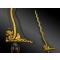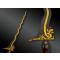 Lame en pamor à double tranchants est ondulée, ciselée d’un dragon, d’un cheval et de rinceaux, rehaussés d’or.