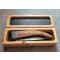 Il est complètement neuf, n'a jamais servi, dans son écrin en bois sur-mesure avec un étui-pochette en cuir.