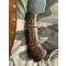- Plaquettes en chêne vieilli, décorations cordage, 3 rivets laiton creux, Talon dépassant avec trou passe dragonne caché (voir photo). Construction plate semelle.