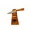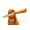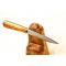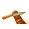 Une vraie réalisation à l’ancienne pour ce petit couteau qui allie le vieux fer d’un cerclage de roue de carriole et l’acier d’une vieille lime, le tout soudé au feu comme il se doit. Un passage à l’acide permet de révéler le motif du vieux fer sur le corps et la démarcation du tranchant rapporté en acier. Les plaquettes en érable ondé teinté se prêtent parfaitement à cette réalisation.