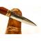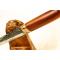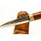 Inspiré du Dirk écossais, mais avec des dimensions plus contenues, ce couteau forgé dans du XC75 allie brut de forge et élégance, avec son émouture satinée, sa virole en laiton et cuivre, et son manche en chaleureux prunier. La lame est rainurée et guillochée dans le style écossais.