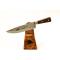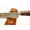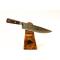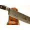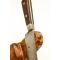 Avec ses dimensions généreuses, ce couteau de trappeur trouvera aussi bien sa place sur le terrain que dans la cuisine d’un amateur de bonne chair. La lame et les garnitures reçoivent une patine forcée, tandis que les plaquettes portent quelques marques de vécu, pour un couteau de caractère.