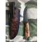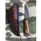 -plaquettes du manche en loupe d'orme. Construction plate semelle, rivets molleton. -Pommeau du couteau en virgule torsadée.