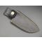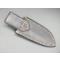 Couteau artisanal français en acier carbone forgé et son fourreau en cuir noir cousu main. Manche en ébène avec liseret bleu, lame forgée et martelée.