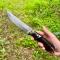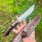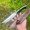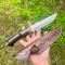Couteau artisanal lame acier damas manche bois d'ébène custom avec etui