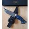 Superbe couteau artisanal de Claudio Sobral, étui cuir. Manche en bois teinté. Prix ferme
