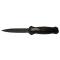 Acier : Acier D2 Composition du manche : Aluminium Poids : 139 Longueur lame (mm) : 99 Couleur lame : Noire Profil de lame : Spear Point Couleur manche : Noir Tranchant : Double tranchant lisse Ouverture Sécurité : Automatique frontal Port : Etui de type Cordura