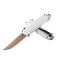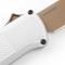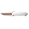 La lame en finition PVD Flat Dark Earth. Manche : Grivory ivoire, un composite thermoplastique chargé de verre, il est léger et durable.