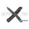 Le design linéaire et le revêtement en couleur titane gris confèrent à ce couteau de poche Select une touche d'élégance. Couteau automatique en matériaux de haute qualité, tels que l'acier inoxydable 440C pour la lame et le manche en acier inoxydable avec incrustations en fibre de carbone, complètent l'ensemble. Un clip ceinture est fixé à l'arrière de la poignée.
