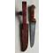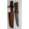 Très bon couteau de boucher ,peut servir a chasseur car possibilité de port a la ceinture , étui cuir artisanal,cousu ,très bonne lame acier,manche bois ,bon état, peux encore servir de nombreuses années.