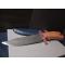 La lame est est forgée puis reprise à la lime et finie à la pierre. Les émoutures ont partiellement été reprises mais la lame à un aspect brut de forge.