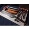 Le manche est sculté au ciseau dans du chêne et assemblé sans colle uniquement par l'intermédiaire des renforts en cuivre et laiton (patines au feu) qui servent également de cache joint.