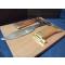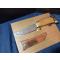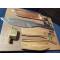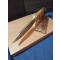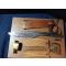 Le manche est réalisé sans colle, les 2 parties sont emboîtés l'une dans l'autre et maintenues par les renforts. Le travail du bois est entièrement fait au ciseau à bois et couteau à sculpter japonais (kiridashi).