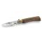Couteau pliant « Old Bear® » de bricolage. La lame est munie de 2 encoches coupantes permettant notamment de dénuder les fils électriques Old Bear® : une série de couteaux produits artisanalement par des ouvriers expérimentés Chaque couteau est un modèle unique et original. Toute irrégularité sur la surface du couteau est une garantie supplémentaire du processus de fabrication artisanale qui ne modifie et n'altère pas les fonctionnalités du couteau. Manche en bois de noyer américain traité à l?huile, Lame en acier inox AISI 420 satiné et aiguisée à la pierre - HRC54/56 Muni d'une virole de sécurité en laiton, pour le blocage du manche en position ouverte et fermée. Longueur de lame : 8 cm (partie coupante : 5.5 cm - partie encoches coupantes 2.5 cm) Longueur du manche : 11 cm Longueur ouvert : 19 cm Le laiton a tendance à noircir. Pour pallier à cet inconvénient, nous vous conseillons une pâte à polir, permettant d'éliminer l'oxydation sur la plupart des métaux.